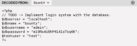 Next, I modified my payload to fetch db.php and I repeated the same steps to view the contents in clear.