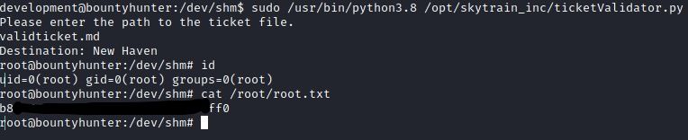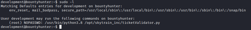 I made a new ticket in the target with a command to spawn bash. As I am able to run ticketValidator.py with sudo, the spawned bash would be as root.