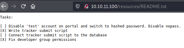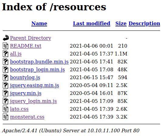 I found a set of credentials but did not know where it belonged to. I returned to my gobuster results to see if I missed out any other interesting files or directories, and noticed a resource directory.